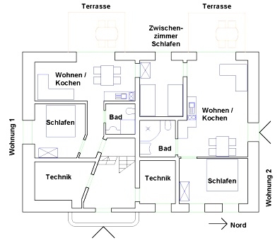 In den 3-Sterne-Ferienwohnungen werden Sie sich wie zu Hause fühlen. Neben den Schlafzimmern verfügen alle über ein Wohnzimmer mit Schlafcouch, eine Küchenzeile mit Esstisch, Sat-TV und teilweise über einen Balkon oder eine Terrasse.