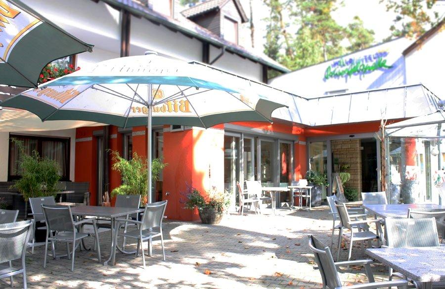 Το δημοφιλές εστιατόριό μας για τους εκδρομείς διαθέτει επίσης μια σκιερή βεράντα στον κήπο, όπου μπορείτε να βρείτε ηρεμία και χαλάρωση. Η κουζίνα μας, η οποία είναι γνωστή και εκτιμημένη, σας περιποιείται με τοπικές και διεθνείς σπεσιαλιτέ και εκπροσωπείται κάθε χρόνο στις εβδομάδες λιχουδιών του Schwandorf. Φυσικά, το πλούσιο μενού μας περιλαμβάνει επίσης πλούσια σνακ. Ακριβώς δίπλα στη βεράντα του κήπου υπάρχει παιδική χαρά και παιδότοπος στο εστιατόριο.