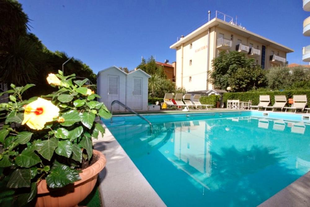 L'Hotel Gaudia si trova vicino al centro termale di Riccione. L'ampia e soleggiata piscina con idromassaggio è circondata da un giardino attrezzato con lettini, ombrelloni e giochi per bambini.