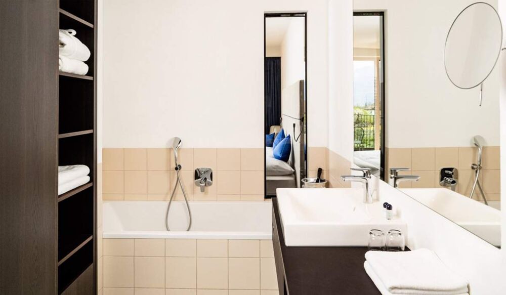 С лета 2017 года отель Thalhof сияет в новом великолепии - и тем самым выставляет свои номера в выгодном свете. Точнее, в большом количестве света. Все новые номера и сьюты выходят на юг и благодаря большим стеклянным фасадам впускают в себя много южной природы в виде солнца и аромата виноградников, покрытых кипарисами.