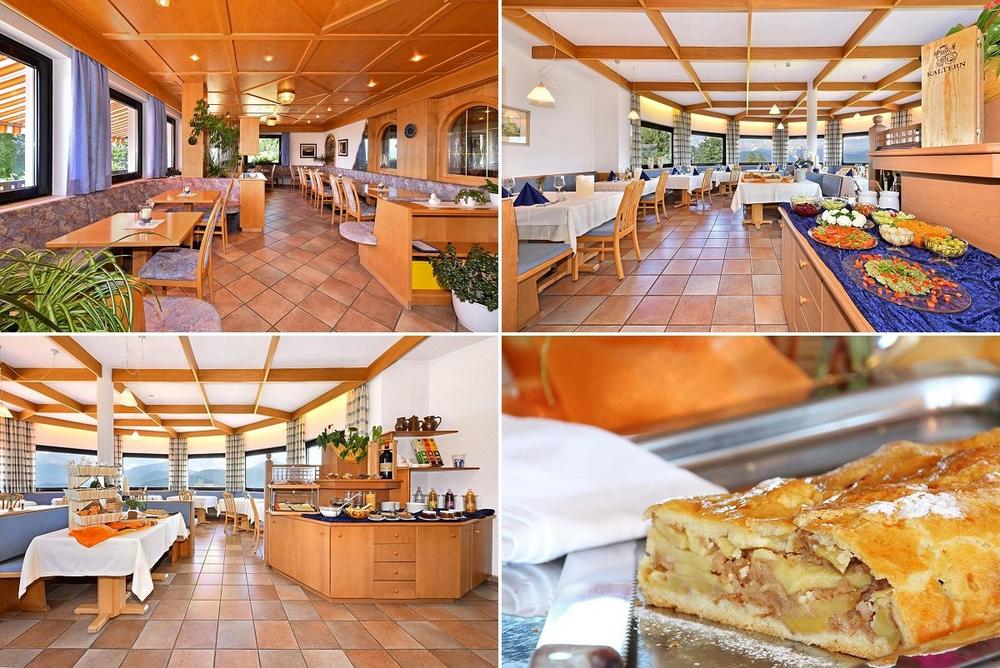 Reichhaltiges Frühstücksbuffet mit Produkten von Bauern aus der Region, einheimische Käse- und Wurstspezialitäten sowie Speck stehen ebenso bereit wie süßes Gebäck, Müsli und Joghurt; gerne bereiten wir auch warme Eierspeisen frisch für Sie zu. Zum Frühstück servieren wir Ihnen nach Wunsch Cappuccino, Latte Macchiato oder Frühstückskaffe und bieten Ihnen eine Auswahl feiner Teesorten. Am Abend bedienen Sie sich am großen Salatbuffet und genießen ein 4-Gänge-Feinschmeckermenü mit leckeren Gerichten aus Südtirol und Spezialitäten der italienischen Küche. Am Sonntag laden wir Sie zum Aperitif. Tiroler Spezialitätenabend. Italienischer Abend.