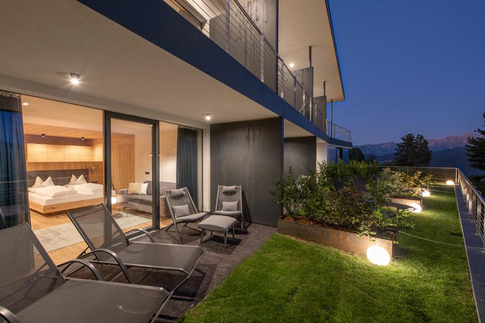 Wie angenehm ist es, sich nach einem aktiven Tag in der Natur oder an einem gemütlichen Nachmittag in unserer Sauna-Wohlfühlwelt zu entspannen! Mit Finnischer Sauna, Aroma-Dampfbad und Infrarotsauna erwartet Sie ein belebendes Saunaerlebnis. Ein lichtdurchfluteter Frischluftraum mit direktem Ausgang ins Freie (Schnee!) ist ein besonderes Plus unseres Saunabereichs. Besonders beliebt ist der Ruheraum mit spektakulärem Rundblick auf die Felsmassive der Dolomiten, die im Sonnenuntergang mit ihrer typischen Röte ein fantastisches Schauspiel bieten. Die bequem gepolsterten Komfortliegen - alle direkt an der Fensterfront - erlauben Ihnen ein wunderbares Relax-Erlebnis in der allerersten Reihe.