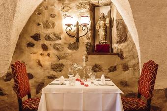 Personlighet och kreativitet - det är också credo för köket på vårt slottshotell. Gourmeter får uppleva riktiga kulinariska läckerheter här och njuta av den speciella blandningen av medelhavsdelikatesser och produkter från Sydtyrolen i den antika men lyxiga atmosfären i vår slottsrestaurang. Förutom de varierade gourmetmenyerna erbjuder vi gästerna rätter från vårt wellness- och dietkök, som vår köksjuvel Oswald Bertagnolli och hans team skapar med stor omsorg om detaljerna.