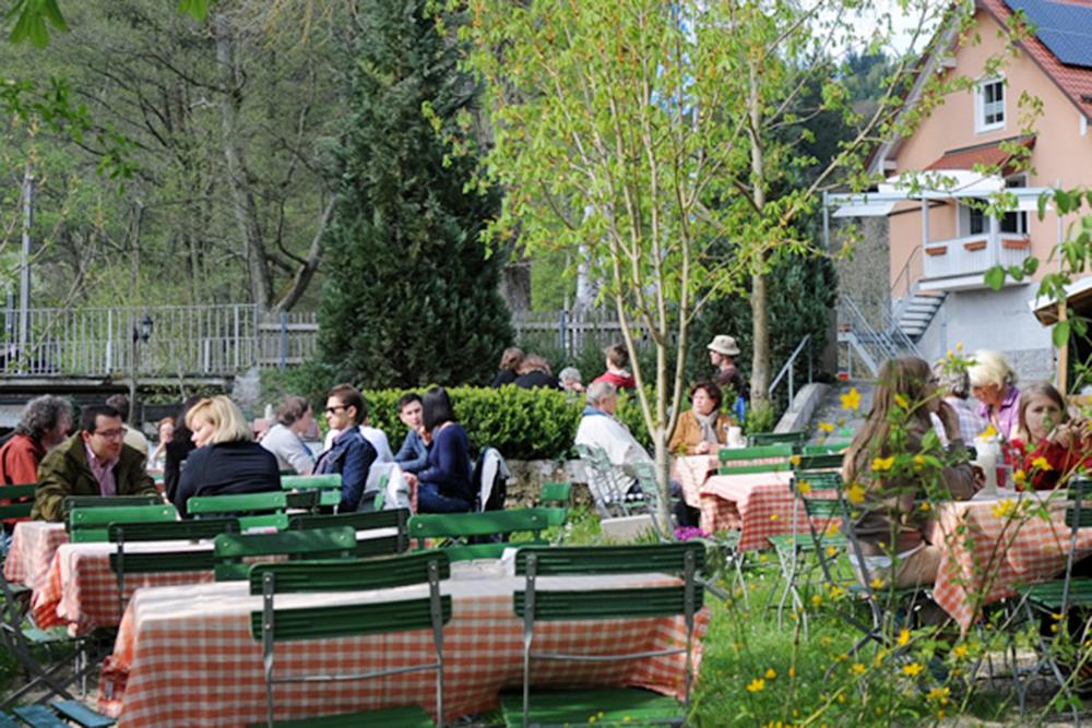 Groups of 20 to 150 people can be catered for in the restaurant or hall by prior arrangement only. The naturally grown beer garden with 400 seats is located next to the Otterbach waterfall.
