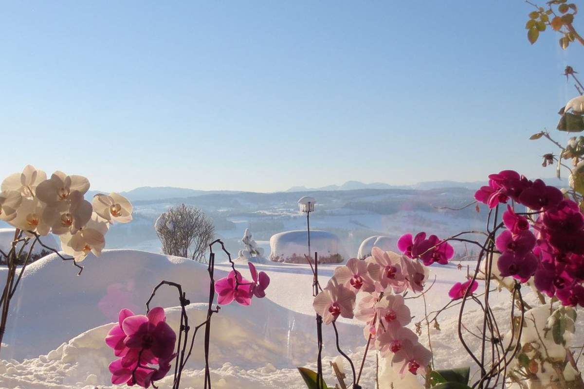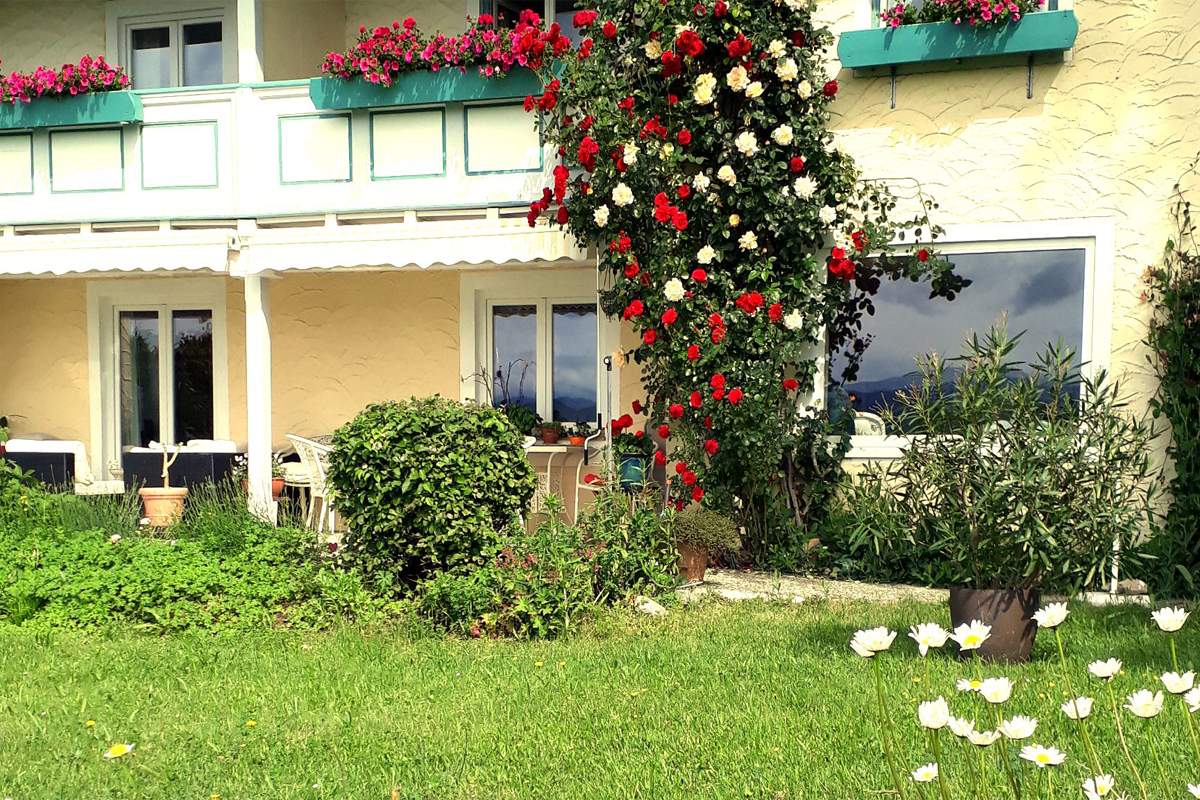 Náš dům se nachází ve slunné nadmořské výšce cca 800 m s neomezeným výhledem na alpské panorama - a přitom jen 10 minut chůze od centra města.
