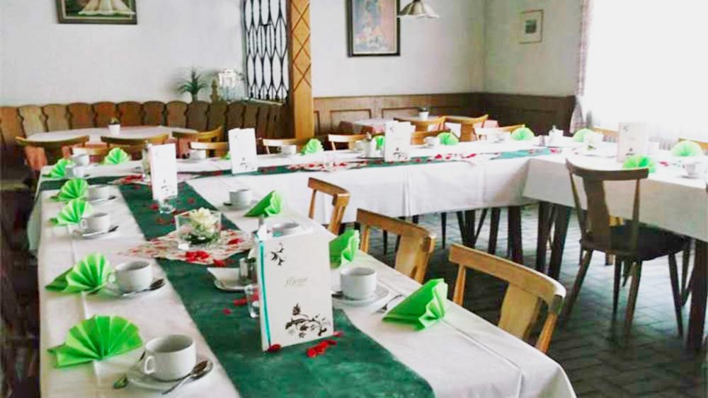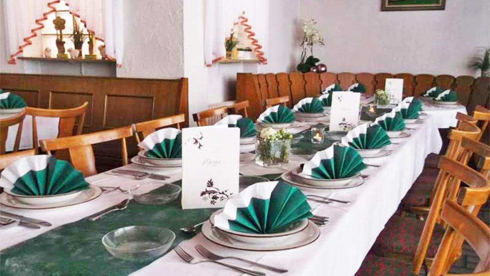 När vi anlände till hotellet hade de semester. Det råkade finnas någon där som hörde när vi ryckte i dörren och kom ut och frågade vad vi ville. Restaurangen var inte öppen - de hade semester.Det fanns ingen annan restaurang i Waldbrunn Vi fick i alla fall bo där och frukosten dagen därpå var helt OK. Vi flyttade dagen efter till ett annat hotell i Randersacker.