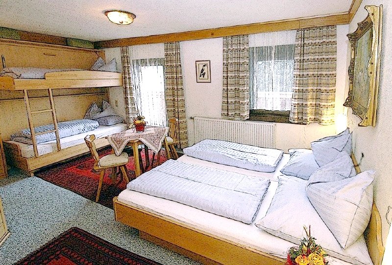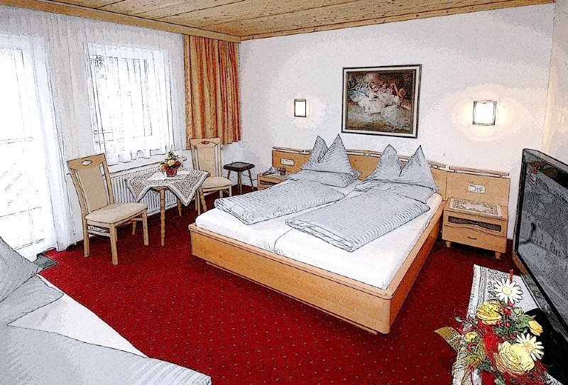 Toate camerele noastre sunt dotate cu duș/WC, telefon cu apelare directă, TV prin cablu (ecran plat, HD), acces la balcon sau terasă și conexiune WLAN gratuită. Persoanele care suferă de alergii pot rezerva o cameră special adaptată nevoilor lor. Pe lângă camerele duble, triple și de familie, avem și camere confortabile de o persoană și camere twin cu paturi separate pentru dumneavoastră. Poate doriți să folosiți și apartamentul nostru pentru trei-patru persoane, cu zonă de relaxare, canapea, televizor și facilități de gătit? Familiile cu copii pot sta la noi în condiții deosebit de avantajoase.