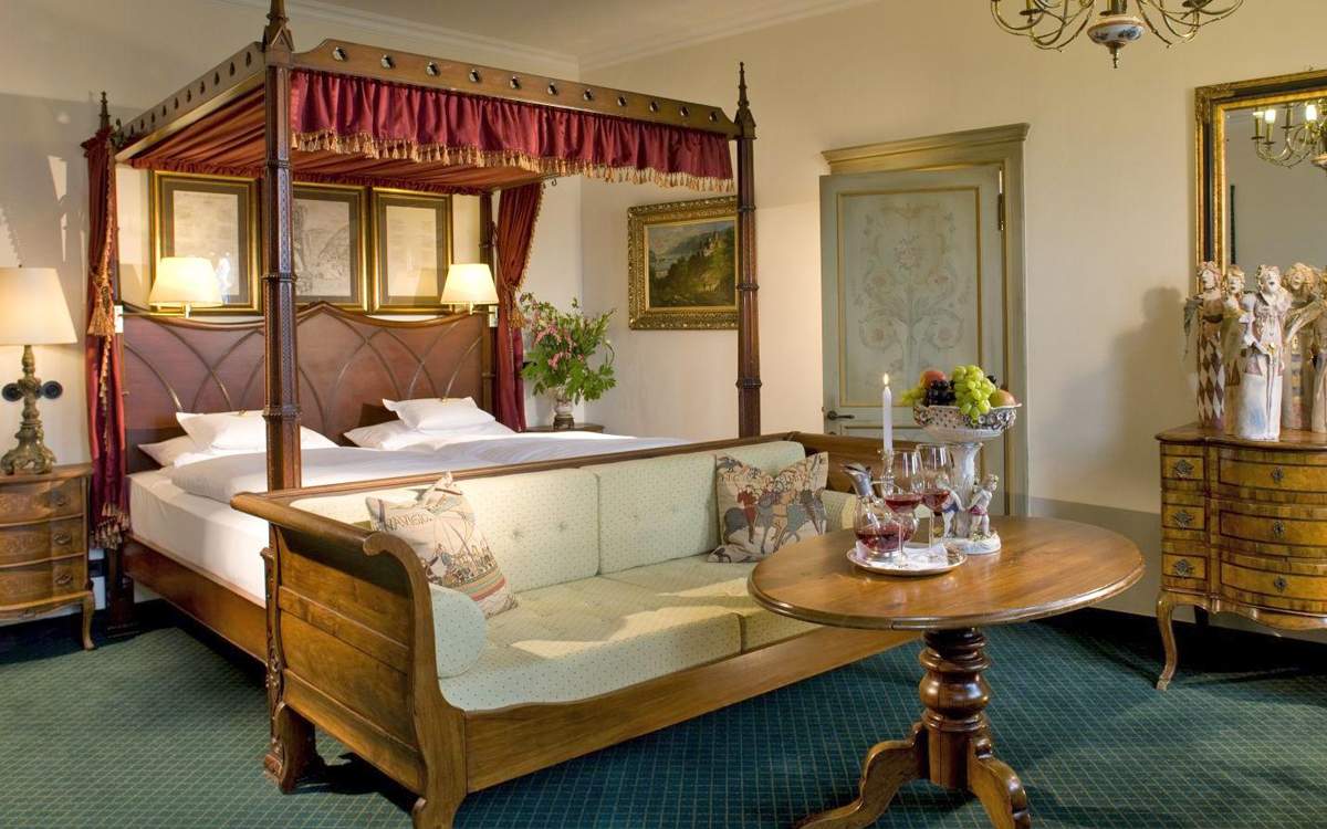Náš zámocký hotel ponúka 29 komfortných nefajčiarskych izieb a apartmánov. Každá izba je individuálne a s láskou zariadená. Naše izby s balkónmi alebo terasami s výhľadom na Rýn ponúkajú výnimočné zážitky. Ceny izieb sú založené na rezervácii s raňajkami alebo polpenziou, vrátane uvítacieho sherry, bezplatného minibaru, exkluzívneho prístupu do zámockého parku a návštevy múzea vo veži počas otváracích hodín.