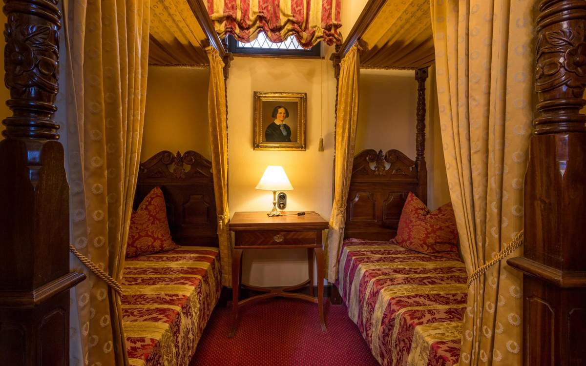 Vyberte sa na objavnú cestu do našej romantickej zámockej záhrady. Po pozdrave Siedmich panien na ceste dole do záhrady preskúmajte napríklad domček na strome, skryté pramene alebo rondavel. Budete mať fascinujúci výhľad na údolie Engehöller, stredoveké mesto Oberwesel a údolie Rýna. Zámocká záhrada je k dispozícii výlučne našim hosťom.