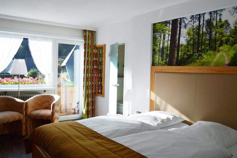 Las confortables habitaciones están equipadas con ducha/WC, teléfono y TV en color, y la mayoría tiene balcón o terraza. Tras una noche de descanso, podrá disfrutar de un amplio desayuno buffet con especialidades regionales. Comience el día con un delicioso desayuno. Le esperan especialidades de café y té, pan y bollería recién hechos, fruta y verdura cruda, una selección de embutidos y quesos, miel y mermelada, yogures y cereales, y mucho más.
