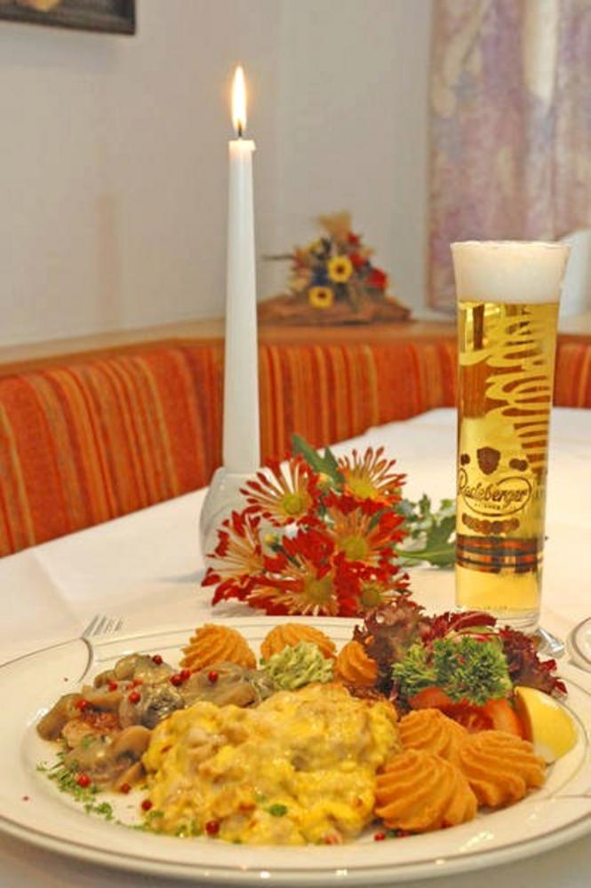 Ένα άνετο εστιατόριο με 50 θέσεις είναι διαθέσιμο για τους επισκέπτες μας. Καθημερινά φρεσκομαγειρεμένα, σερβίρουμε σπιτική σαξονική κουζίνα, κυνήγι από τα δάση των Ορέων Ore και σπεσιαλιτέ του σπιτιού μας. Η μπύρα φρέσκια από το βαρέλι και τα εκλεκτά κρασιά συμπληρώνουν την προσφορά και κάνουν τη διαμονή σας ευχάριστη.