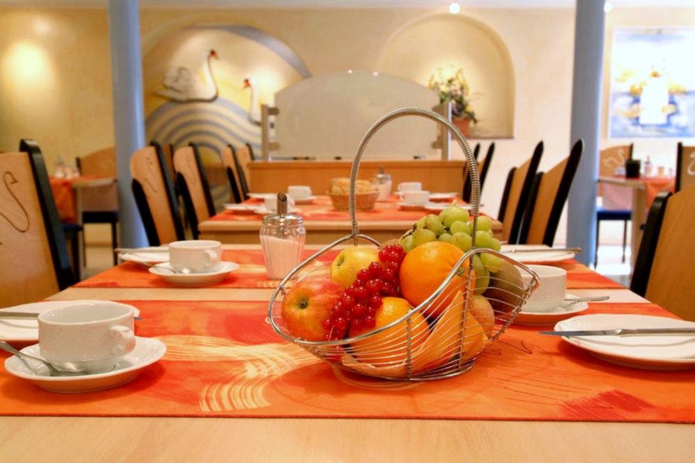 Στο Schwanen θα βρείτε μια μεγάλη ποικιλία πιάτων από τοπικά προϊόντα. Συγκεκριμένα, προμηθευόμαστε το μεγαλύτερο μέρος του κρέατος από τοπικούς παραγωγούς. Ειδικευόμαστε στην σπιτική γερμανική κουζίνα. Πάνω απ' όλα, σερβίρουμε τυπικές λιχουδιές από τη συνοριακή περιοχή μας Baden-Alsace. Η προσφορά μας κυμαίνεται από χορταστικά σνακ μέχρι γεύματα έξι πιάτων για καλοφαγάδες. Η επιλογή των πιάτων με ψάρι και κρέας, των σαλατών και των γλυκών του μενού μας συμπληρώνεται από εποχιακές σπεσιαλιτέ από το γαστρονομικό μας ημερολόγιο και το εβδομαδιαία μεταβαλλόμενο μενού μας. Οι επισκέπτες μας μπορούν να απολαύσουν νοστιμιές όπως κανθαρέλλες, πέστροφα, κυνήγι, σπαράγγια ή matjes- πολλοί εκτιμούν επίσης τα χορτοφαγικά πιάτα μας. Τους καλοκαιρινούς μήνες, η πρόσφατα σχεδιασμένη βεράντα μας σας προσκαλεί να δειπνήσετε στο ύπαιθρο ή απλώς να κάνετε πρόποση με ένα δροσερό ποτό.