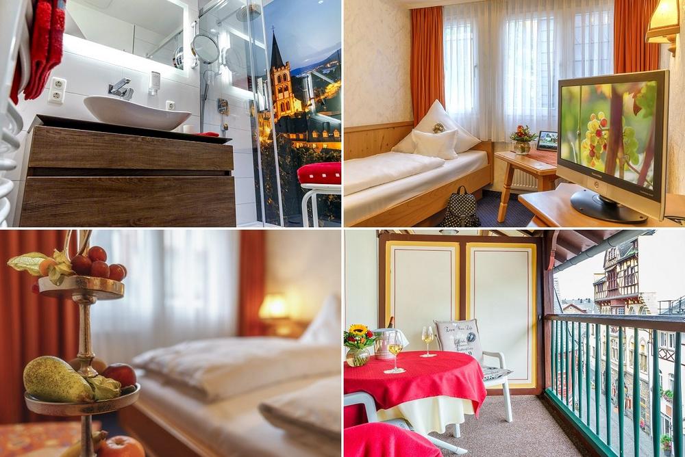 In dem romantischen Bacharach hinterließen schon Dichter, Maler und Musiker ihre Spuren. Unsere Zimmer sind alle mit Bad/WC oder Dusche/WC, Telefon, Satelliten-TV, Flachbildfernseher, Laptopsafe, Minibar und Fön ausgestattet. Teilweise verfügen die Zimmer über einen Balkon und sind mit dem Lift erreichbar.