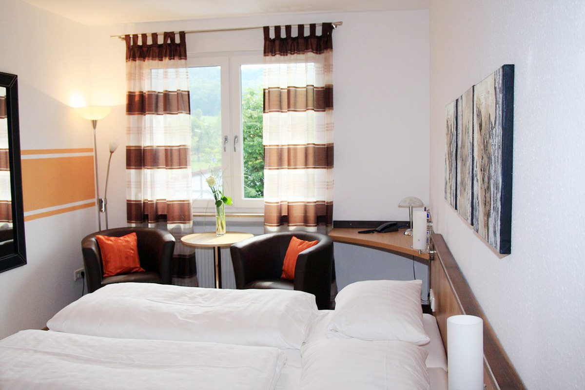 Våra bekväma rum är utrustade med dusch/toalett, telefon, skrivbord, LCD-TV, klockradio, kassaskåp, kylskåp, hårtork och sminkspegel. Du kan välja mellan bed and breakfast, halvpension eller helpension.