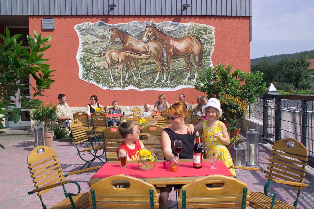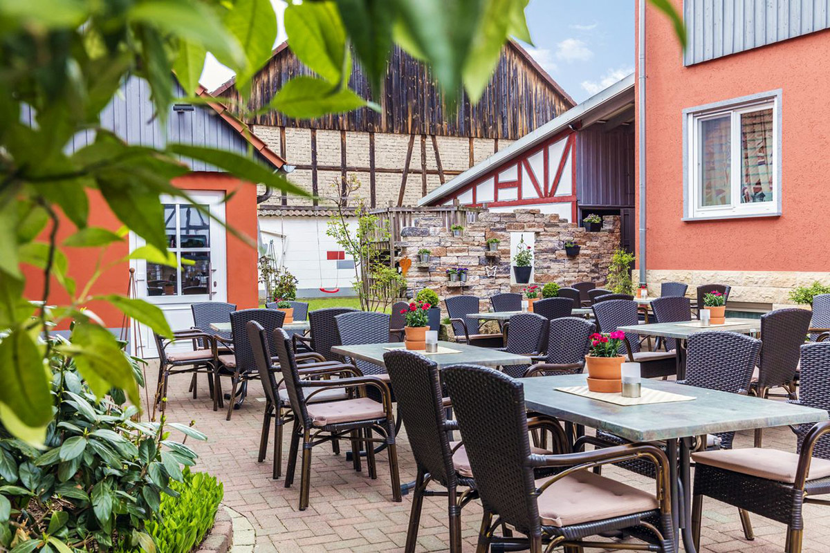 Här kan du njuta av fina tyska rätter, säsongsbetonade och regionala Rhön-rätter. Den omfattande menyn tillagas med omsorg och professionell expertis.
