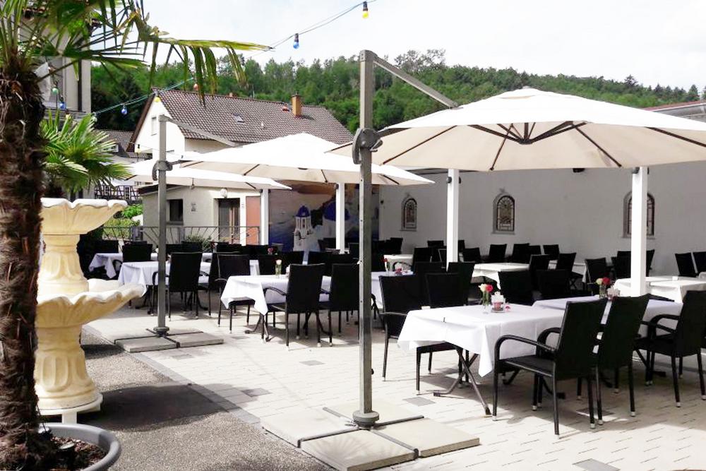 Notre salon est un lieu très apprécié des clients, qu'ils viennent de près ou de loin. Et si vous voulez vous régaler en plein air, vous pouvez aussi vous installer confortablement dans notre jardin de la bière. Notre chef vous préparera une variété de grillades et de menus de saison. Qu'il s'agisse de cuisine allemande ou de spécialités grecques, il y en a pour tous les goûts.
