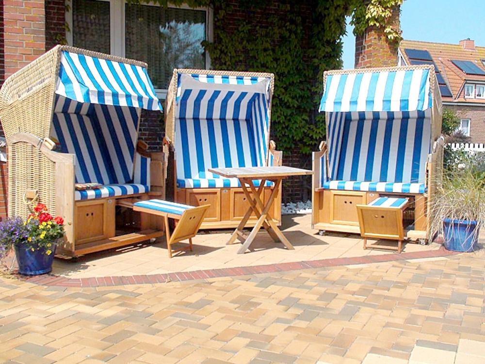 På sydsiden af vores forbygning finder du vores hyggelige opholdsområde med 3 strandstole, som indbyder til solbadning, surfing eller snak over en kop te. De er især tilgængelige for gæster med lejligheder uden balkon eller terrasse.