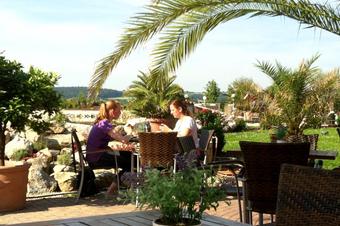 En verano de 2008 inauguramos nuestra terraza de nuevo diseño con más de 5000 m² de agua "el pequeño Mar del Sur". Es realmente maravilloso y como estar de vacaciones cuando terminas el día aquí para cenar o al final del día. En 2009 terminamos nuestro pabellón de verano con estación de barbacoa.