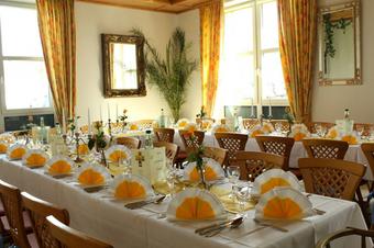 Ya en el siglo XV era un refugio acogedor para los margraves que buscaban reclusión y, por tanto, el padrino de nuestro elegante salón. Recomendamos sentarse aquí para cenar sin molestias. A cualquier hora del día, este salón está decorado de forma festiva, con rincones ocultos o mesas protegidas por un tabique.