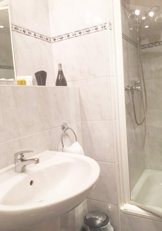 Som alla lägenheter har även denna ett fullt utrustat kök med köksredskap och porslin samt ett badrum med dusch, WC och hårtork.