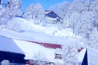 Vårt pensionat är idylliskt beläget i utkanten av en skog, strax ovanför byn Wiggensbach. En magnifik bergsutsikt över Allgäu Alperna väntar dig tidigt på morgonen.