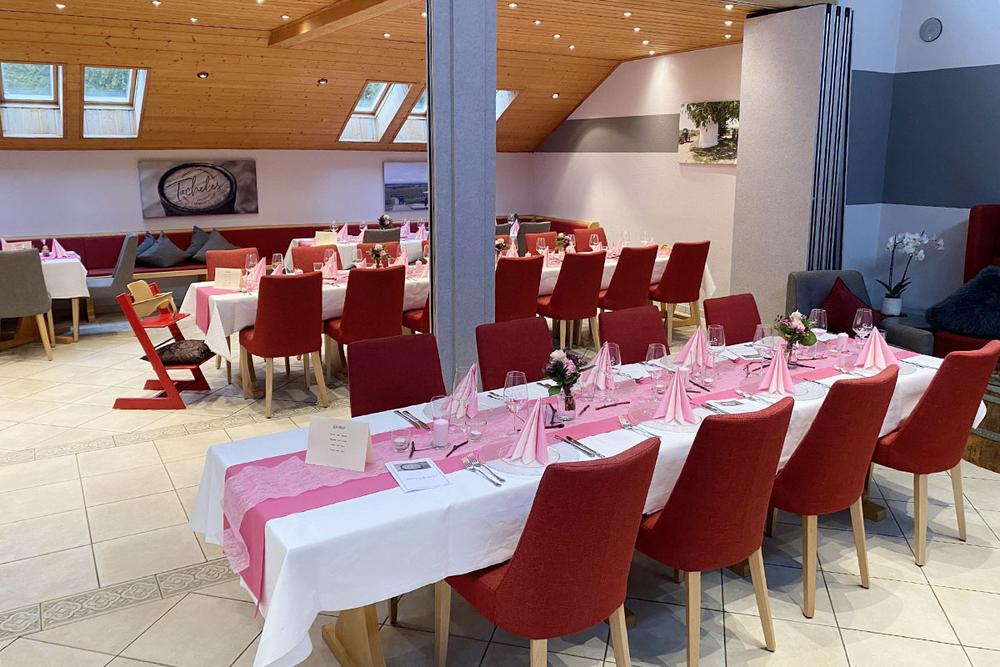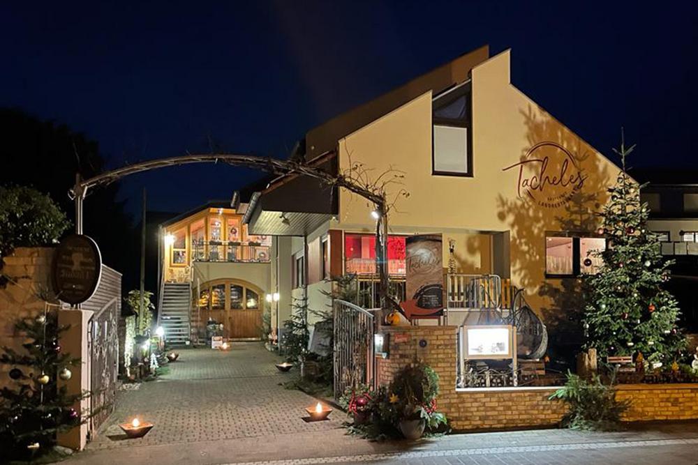 Sie planen ein Klassentreffen oder eine Familienfeier? Dann verwöhnen wir Sie im Tacheles Landrestaurant oder auf der Gartenterrasse mit leckeren Gerichten, vegetarischen Spezialitäten und eigenen Weinen aus ökologischem Anbau – und zu später Stunde brauchen Sie nicht mehr ins Auto steigen, sondern können direkt im Gästehaus schlafen gehen.