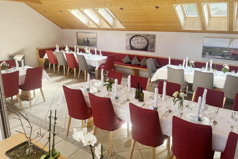 Lassen Sie sich verwöhnen mit einer herzhaften Mahlzeit und einem guten Tropfen aus dem Weingut, das zum Familienbetrieb dazugehört. Besonders für das Wochenende ist eine Tischreservierung empfehlenswert. Am besten nutzen Sie das Kontaktformular. Für den Eingang Ihrer Reservierung erhalten Sie umgehend eine Bestätigung; eine verbindliche Zusage oder ein Alternativangebot senden wir Ihnen innerhalb weniger Tage.