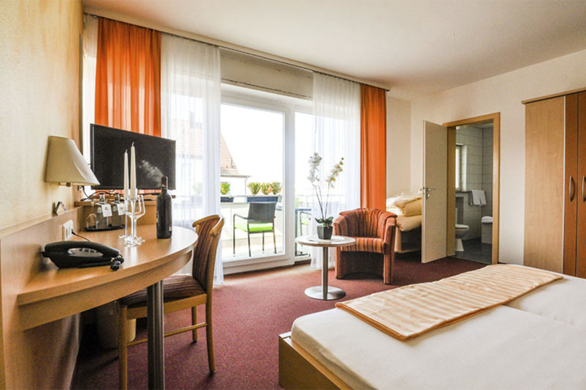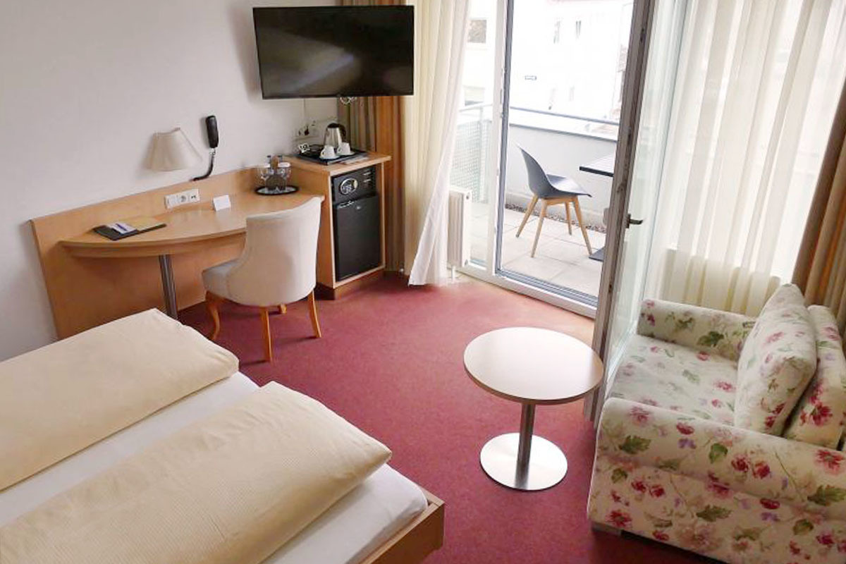 Il nostro hotel dispone di camere singole e doppie, nonché di camere con letti alla francese. Abbiamo un totale di 35 posti letto. Tutte le camere sono state completamente rinnovate nel 2006. Le moderne camere sono dotate di doccia o vasca da bagno, WC, telefono, TV satellitare, accesso a Internet (tramite wireless LAN) e alcune con balcone.