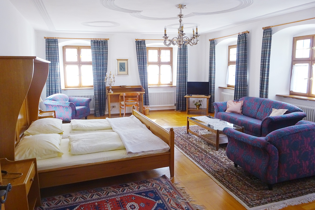 Le Schloß-Hotel propose à ses clients deux restaurants, ainsi qu'une terrasse ensoleillée en été et un café en plein air ombragé où sont servies des salades, du Obatzem (fromage frais) et des spécialités grillées au charbon de bois.
