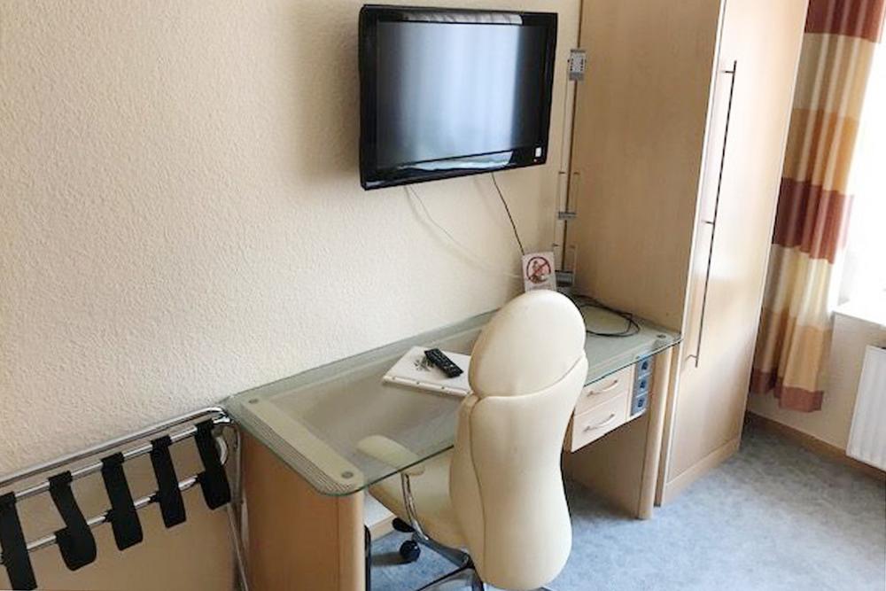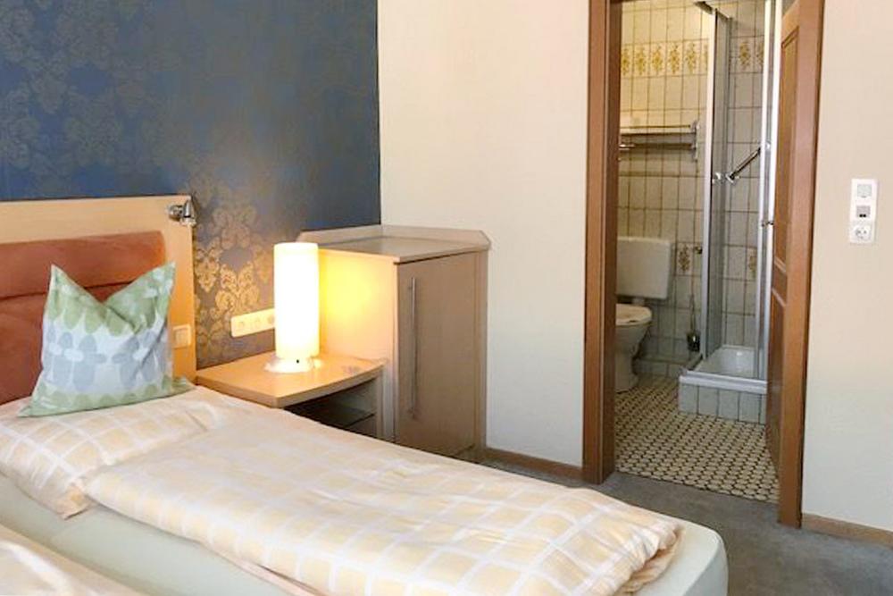 Naše enoposteljne sobe so vse opremljene z lastno kopalnico s tušem in straniščem. Poleg tega je v vseh sobah na voljo brezžični internet, ki zagotavlja tudi zadostno pasovno širino za videotelefonijo ali pretočne storitve. Če imate raje klasične medije, so vse naše sobe opremljene tudi s televizorjem s satelitskimi programi ali monitorjem.