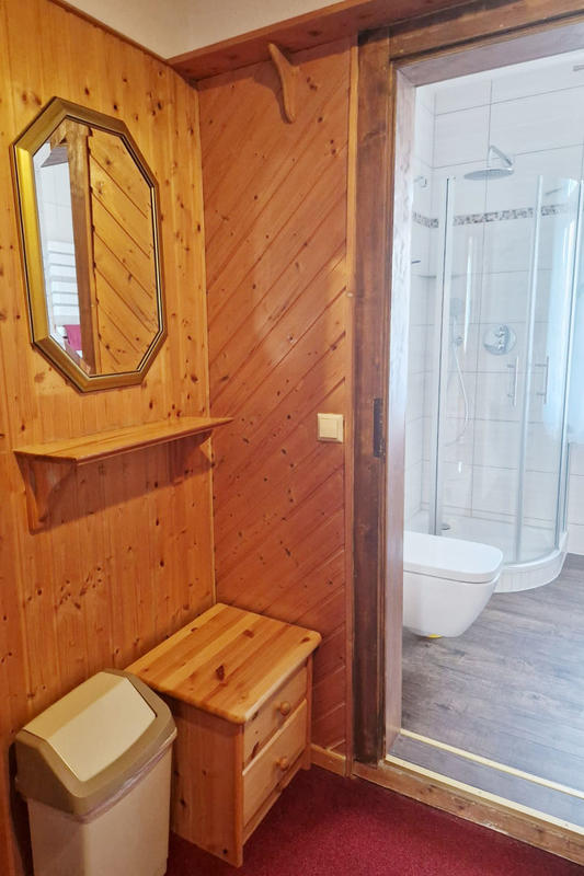 Privatus plytelėmis išklotas vonios kambarys su dušu, televizorius ir kilimas arba parketlentės yra ne mažiau nei skoningi ir tradiciniai baldai.
