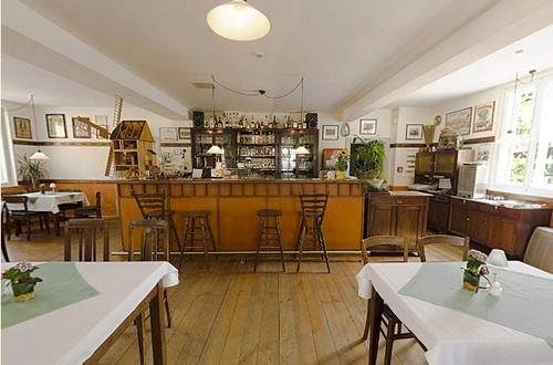 我们的餐厅拥有舒适的乡村风格家具,恭候您的光临。忙碌了一天之后,您可以在啤酒花园里呼吸新鲜空气,品尝美味啤酒,放松身心。我们将为您准备家常菜和当地特色美食,例如来自当地生产商的野味或鱼类。我们也很乐意为您组织公司和家庭庆祝活动。我们的客房最多可容纳 65 人,也是举办会议的理想场所。