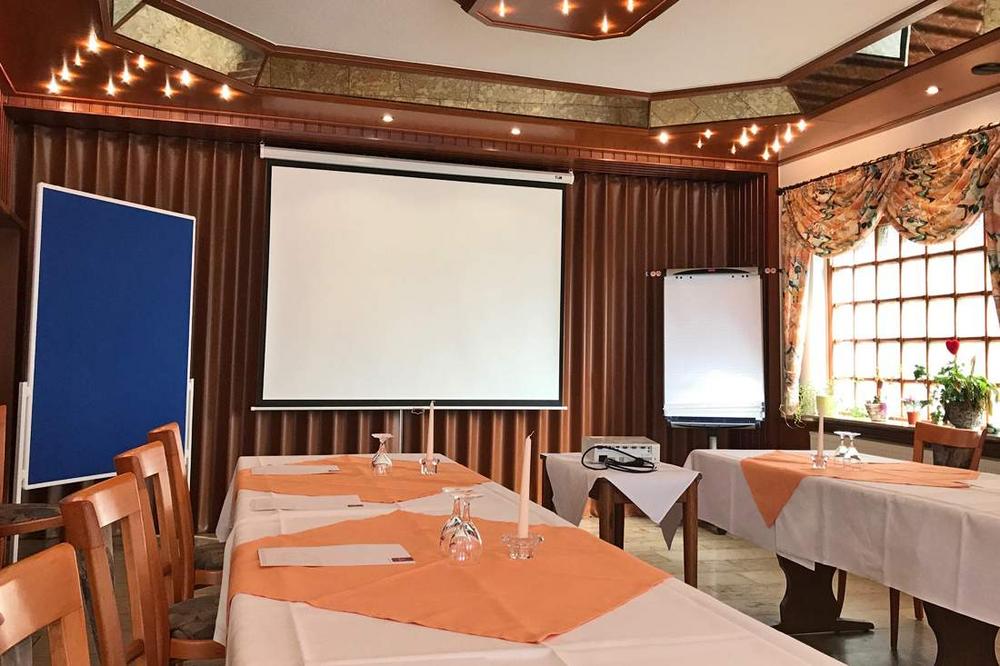 Für Tagungen, Seminare und andere Veranstaltungen stellen wir Ihnen gerne unser großes Kaminzimmer (40 m²) zur Verfügung, das Platz für 15 Personen, eine nutzbare Mindesthöhe von 2,57 m und eine Bestuhlung in Blockform bietet. Wenn Sie eine Veranstaltung mit einer größeren Gruppe planen, können wir Ihnen unseren Festsaal (120 m²) mit einer nutzbaren Mindesthöhe von 4 Metern zur Verfügung stellen.