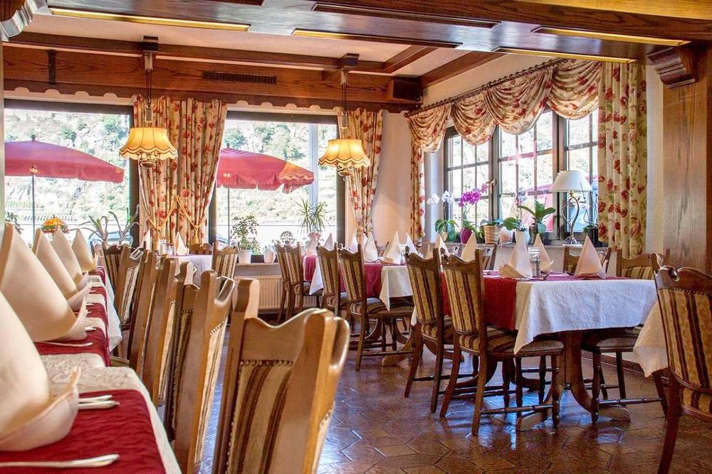 Das einzigartige Ambiente des gemütlichen Kaminzimmers, des Restaurants mit Rheinblick, des großen, komfortablen Saals für Feiern und Tagungen und der romantischen Rheinterrasse lässt auch den anspruchsvollsten Gast sich wohlfühlen. Neben unzähligen Gästen haben bereits viele prominente Politiker und Stars aus Film und Fernsehen in unserem Hotel ihre Aufwartung gemacht.