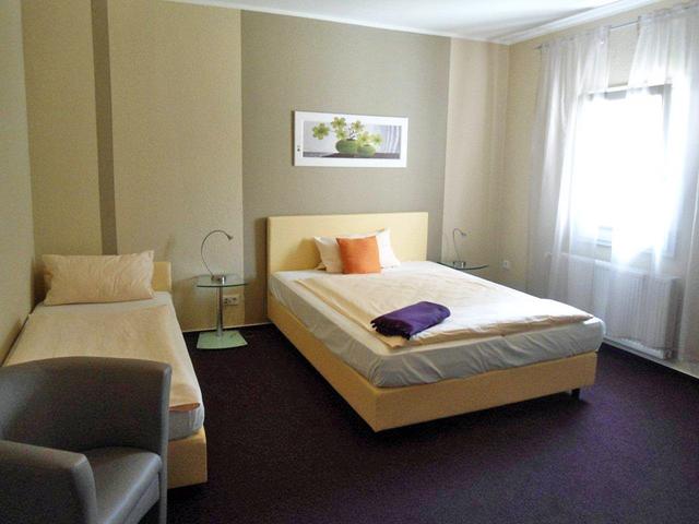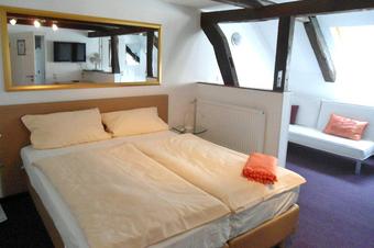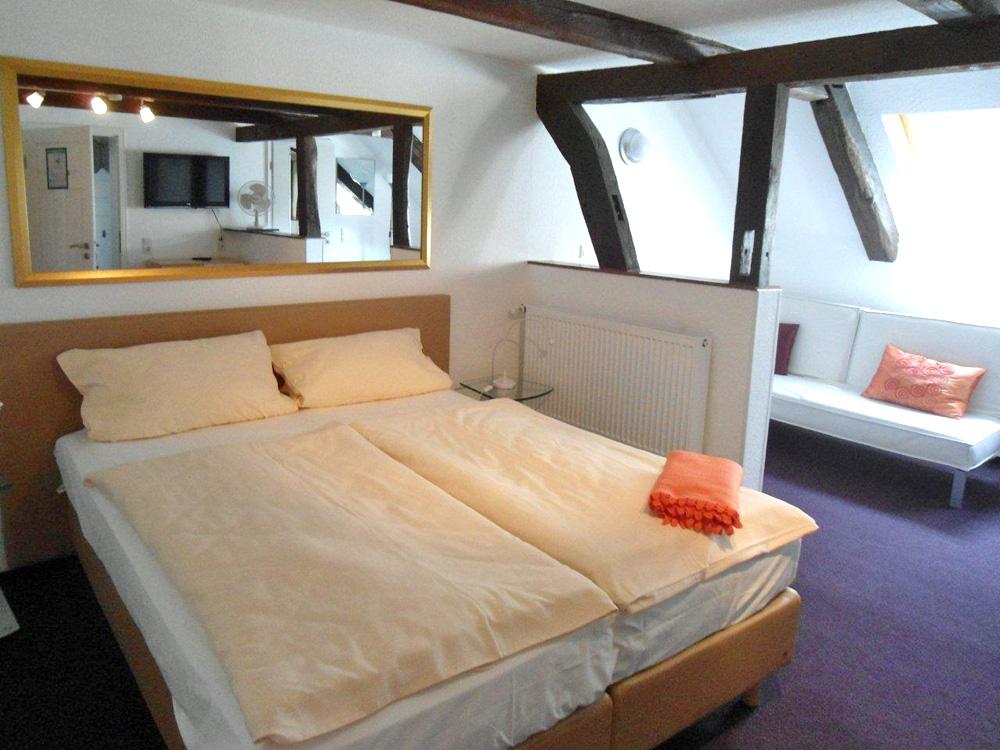 Großzügige Ferienwohnung mit 3 großen Schlafzimmern, kleiner Küche und Speiseraum: Es war auffallend sauber ( daher verstehen wir auch die Reinigungskosten von 40 € für nur eine Übernachtung ????) Die Zimmer sind sehr sehr groß, die Küche mit allem nötigen großzügig ausgestattet. Die Wohnung ist geschmackvoll, liegt allerdings ganz oben unter dem Dach. Pflegeprodukte, Handtücher und sogar Kaffee stehen zur Verfügung. Wir haben uns sehr sehr wohl gefühlt . Der Kontakt mit dem Hotel war sehr gut, sehr freundlich und Reibungslos. Wir würden immer wieder dort buchen ????????